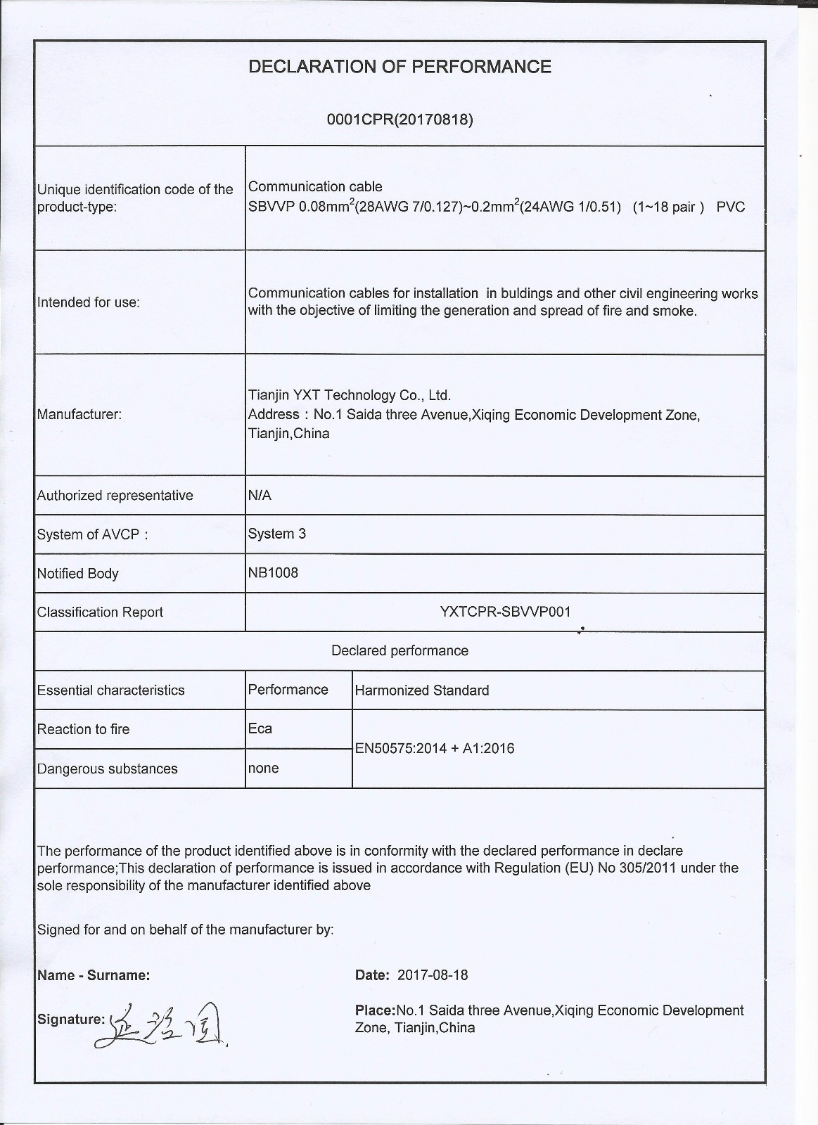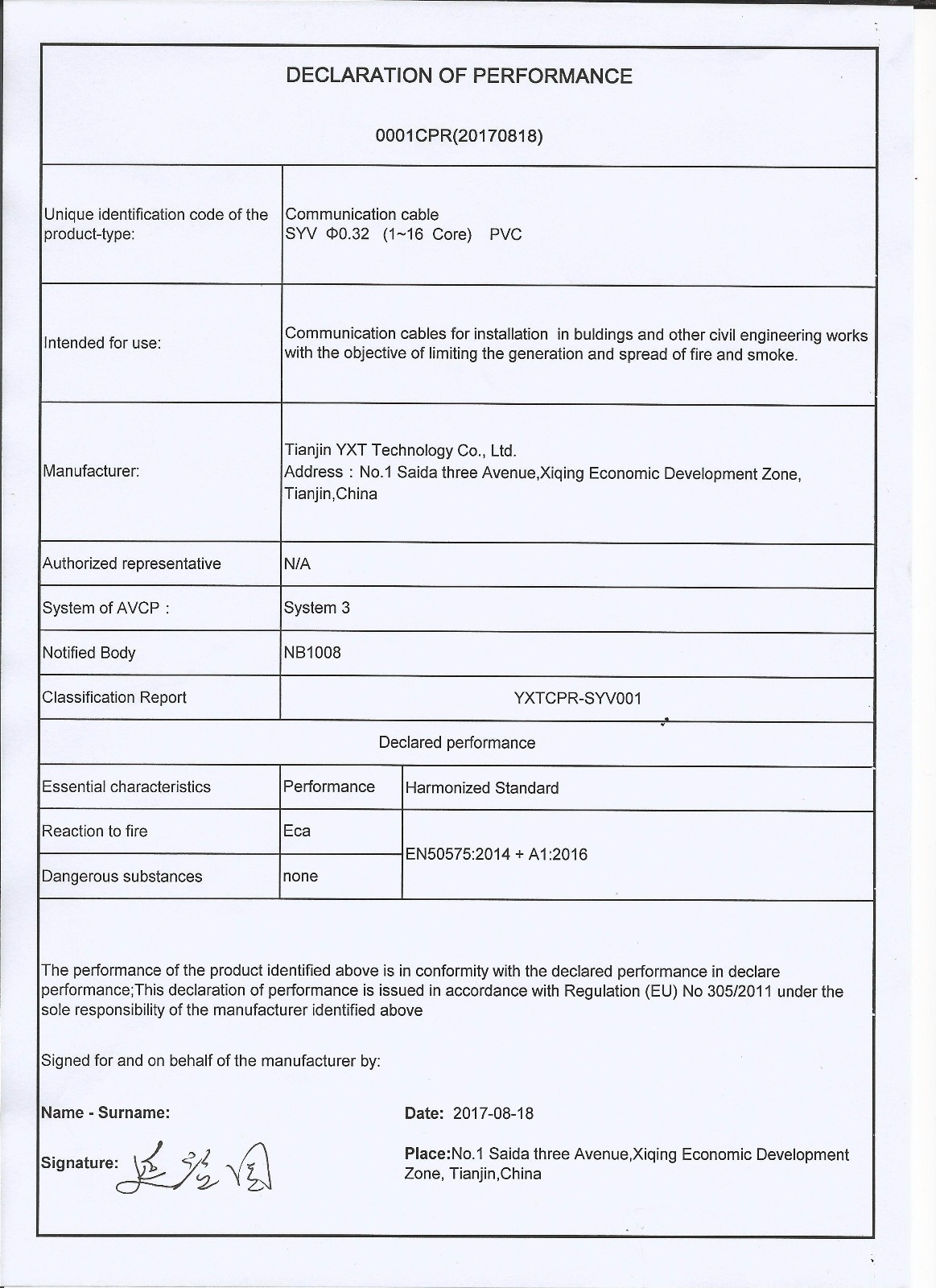 億鑫通CPR---DOP(declaration of performance)聲明!! 發(fā)布日期:2022-12-09 瀏覽量:30786 以下是我司的CPR---DOP(declaration of performance)聲明!!